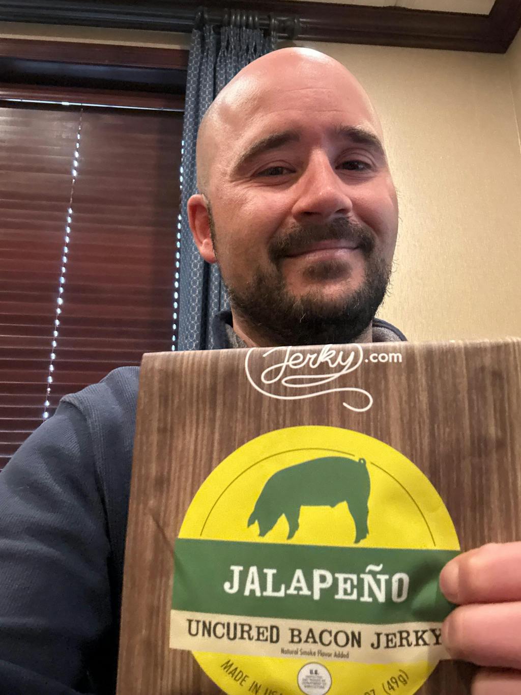I really enjoyed this bacon jerky. The little kick of the jalapeño was just right to enhance the already delicious flavor of the bacon. Will definitely buy again!